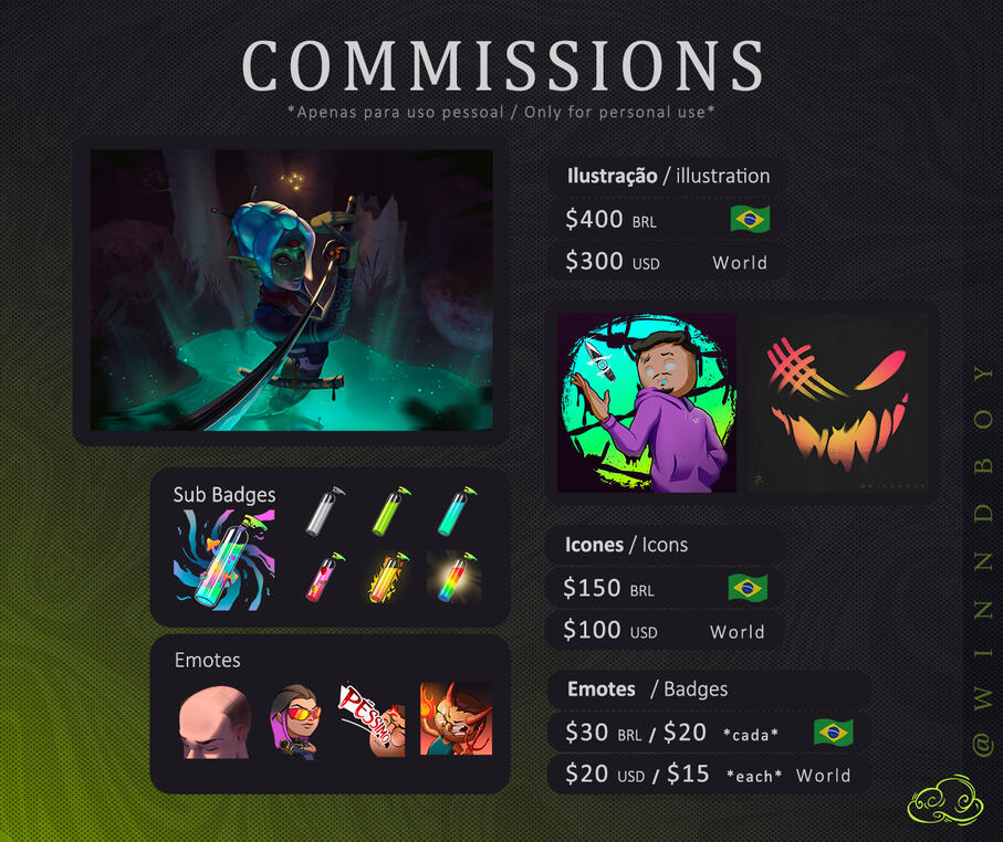O cliente pode usar para usos comerciais leves tais como; ícone e banners de perfil em redes sociais e em canais de criação de conteúdo como; YouTube, Twitch, TikTok, etc...